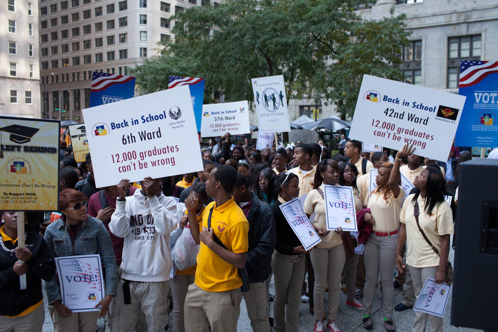 Youth Connection Charter School’s Former High-School Dropout Registration Rally, Daley Plaza, Chicago (October 4, 2012):
